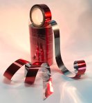 SIX PACK - Narrow Red/Silver BirdBaffler™ Bird Scare Tape is 3/4" wide x 100' long.